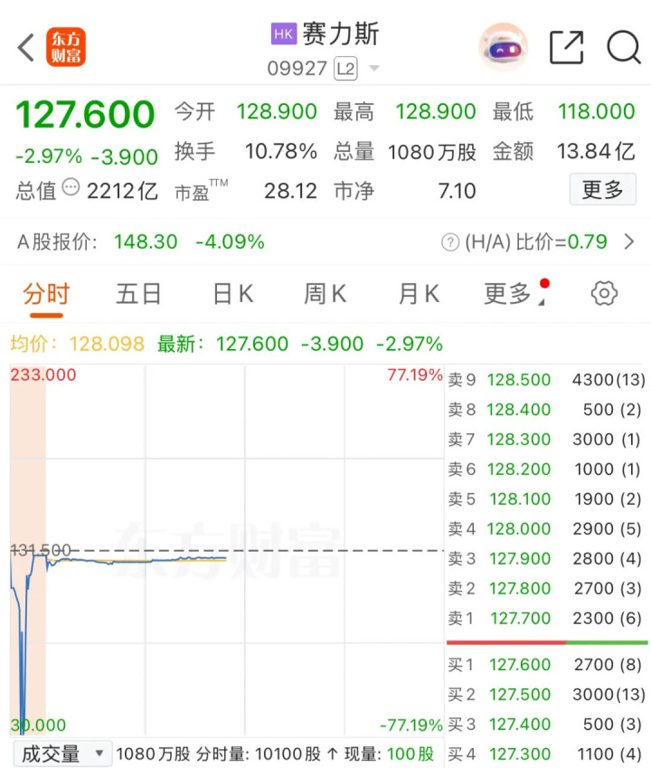 就在当天,赛力斯港股市值冲到2280亿港元,A股市值高达2476亿元。这个数字,相当于两个长安汽车,三个广汽集团。在重庆民营企业史上,这是前所未有的高度。